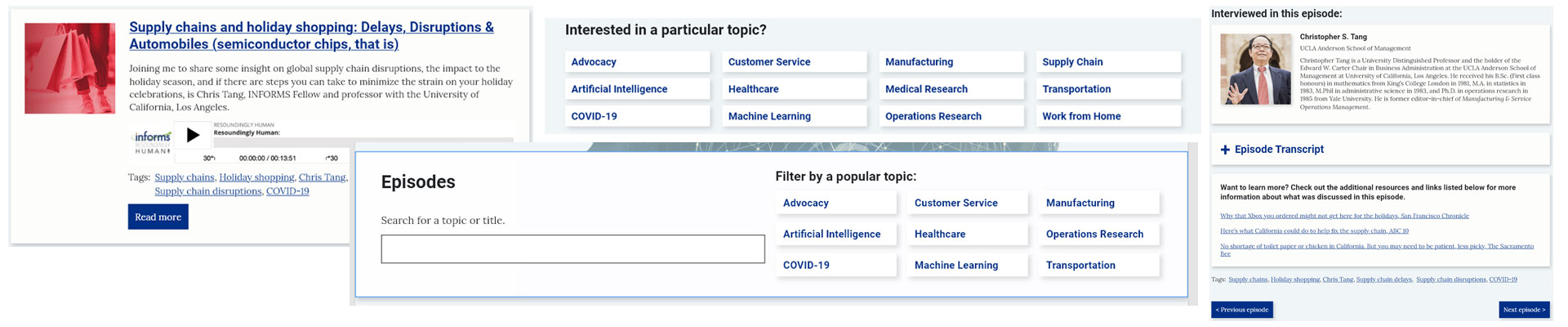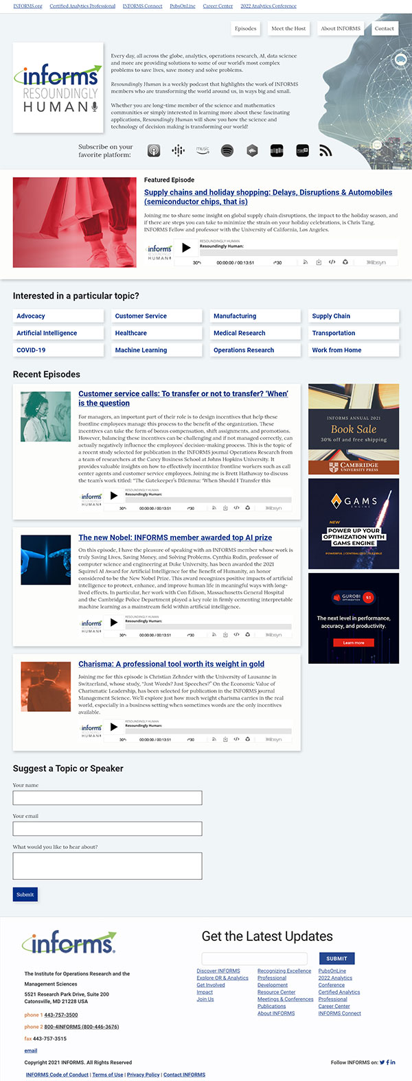Product was a currently existing podcast that was looking to move from within a professional organization member magazine website to its own domain website. The podcast highlights the success stories of the members of its host professional association for operations research and data analytics.